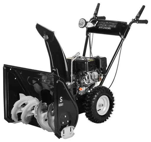 Вопросы о Бензиновый снегоуборщик Hyundai S 6561 (6.5 лс, 4/1 передача, фара, выброс 11м, электростартер)