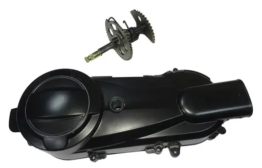 Крышка картера GY6-125/150 ATV вариатора левая в сборе с пусковым устройством 157QMJ (1101) короткая 10 — это высококачественная деталь, предназначенная для мопедов и скутеров с двигателями GY6 объёмом 125 и 150 см³. Она обеспечивает надёжную защиту механизма и упрощает процедуру запуска двигателя.