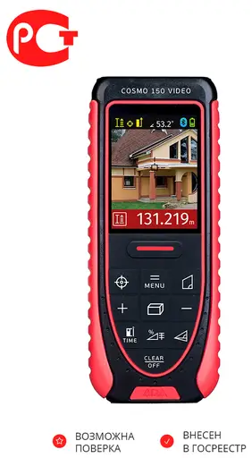 Точность и дальность. Лазерная рулетка ADA COSMO 150 Video предназначена для измерений больших дистанций до 150 метров. Погрешность измерения не превышает ±1,5 мм.