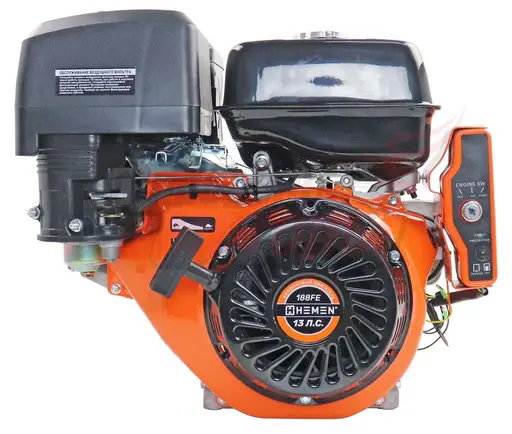 Бензиновый двигатель «Hemen» («Хемен») 188FE — четырехтактный, одноцилиндровый двигатель внутреннего сгорания. Движок мощностью 13 л. с. предназначен для установки на мототехнику различного уровня.