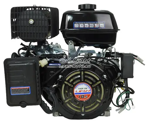 Бензиновый двигатель Lifan 192F-2 3А мощностью 18,5 л.с. устанавливается на различную малую технику бытового применения. Ручной стартер – это гарантия надежного запуска в любых погодных условиях.  Усиленная конструкция корпуса двигателя за счет ребер жесткости является безопасной в эксплуатации и транспортировке. Наличие топливного крана, ограждающего карбюратор от попадания в него топлива, важно при установке. Размеры двигателя сопоставимы с предыдущей по мощности моделью 192F на 17л.с., увеличение мощности достигнуто за счет большего хода поршня, здесь он 69мм.