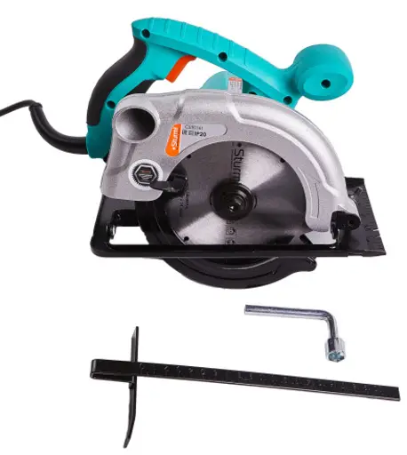 В зависимости от конкретной задачи, за счет регулируемой опорной платформы, глубину пропила всегда можно установить на необходимую пользователю величину. Кроме того, опорная платформа имеет возможность регулировки и бесключевой фиксации в наклонном положении на угол до 45 градусов. Для максимально точной установки опорной платформы под требуемым углом предусмотрена специальная шкала с насечкой. Удобство смены оснастки обеспечивает функция блокировки вала шпинделя – с ее помощью замена пильного диска происходит быстро и легко без необходимости применения вспомогательного, стопорящего вал ключа. Безопасность при работе гарантируют автоматически сдвигающийся в процессе работы защитный кожух, прикрывающий вращающий пильный диск, а также блокиратор кнопки пуска, предотвращающий случайный запуск пилы. За счет предусмотренной функции быстрого доступа к щеткам, их замена осуществляется без долговременного разбора элементов корпуса инструмента. В штатную комплектацию пилы входят параллельный направляющий упор, гаечный ключ, а также комплект запасных щеток.