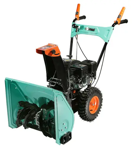 Снегоуборщик оснащен выпускным желобом, с регулировкой как по направлению, так и углу выброса, благодаря чему пользователь без труда может настроить оптимальное расстояние, на которое будет отбрасываться снежная масса. Максимальная дальность выброса достигает 11 метров. Для лучшего сцепления с поверхностью модель комплектуется специальными шинами с глубоким протектором.