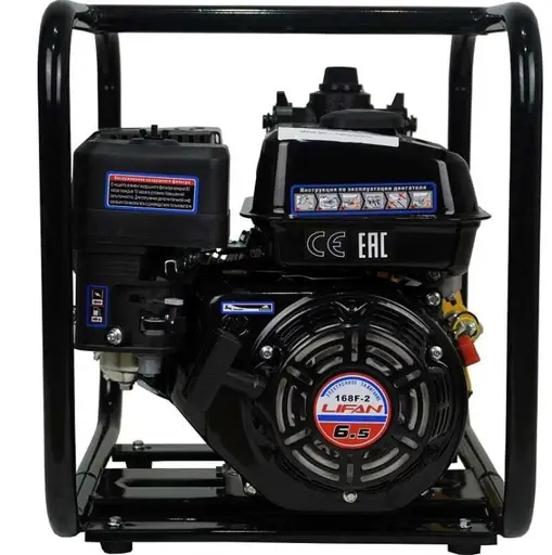 В мотопомпе используется надежный и проверенный временем четырехтакный двигатель Lifan 168F-2 с воздушным охлаждением, один из лучших по соотношению цена - качество, компактных и экономичных агрегатов.