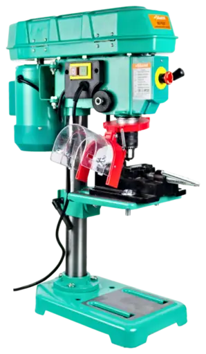 Практичная модель отличается исключительной точностью и очень простым обращением. Настольный сверлильный станок может использоваться в домашних мастерских, мебельном производстве и при выполнении ремонтно-слесарных работ. Он предназначен для точного сверления заготовок из дерева, пластмассы и металла. Сверло опускается с помощью штурвала с тремя рукоятками, контроль глубины производится с помощью индикаторной линейки, расположенной на переднем торце корпуса. В отличие от ручных дрелей станок погружает сверло в заготовку всегда строго вертикально. Станок предоставляет выбор из пяти предусмотренных скоростей для создания оптимальных условий обработки материалов от высокой мощности - на первой, до высокой частоты вращения - на пятой передаче. Высококачественный прочный сверлильный патрон, закрываемый специальным ключом, сохраняет постоянное усилие зажима, даже во время проведения сложных сверлильных работ.