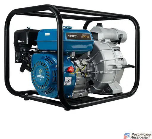 Мотопомпа бензиновая Varteg 1300T80 представляет собой автономный центробежный насос для перекачки грязной воды, работающий от двигателя внутреннего сгорания.