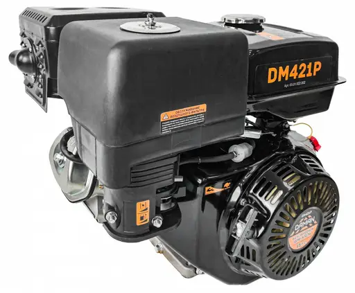 Двигатель бензиновый DAMAN DM421P предназначен для использования в качестве привода на садово-парковой и строительной технике. Двигатель отвечает современным техническим стандартам качества, обеспечивая долгий и безопасный эксплуатационный период.  Топливный бак 3,6 литра. Вал двигателя 25 мм , длина вала 71 мм. Воздушный фильтр, датчик уровня масла, ручной стартер. Целевая аудитория - фермеры, изготовители техники малой механизации, картов, мотособак и прочих изделий с бензоприводом.