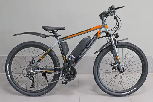 Описание Электровелосипед GET WOKE MTB (АКБ 10Аh,аллюминевый обод,27скоростей) СЕРО-ОРАНЖЕВЫЙ