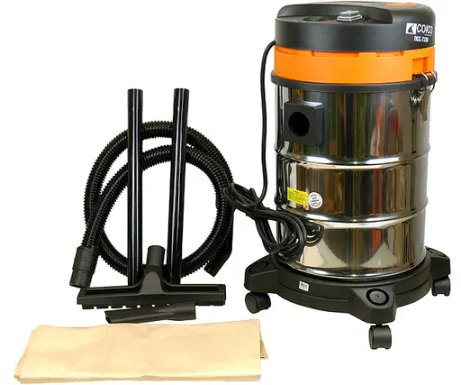 СОЮЗ ПСС-7330 – универсальный промышленный пылесос – незаменимый помощник при уборке, как в мастерских, так и в бытовых помещениях, офисах или квартирах. Благодаря наличию емкого 30 литрового бака, пылесос позволяет производить уборку на больших площадях, без необходимости его частой очистки. Бак выполнен из нержавеющей стали и характеризуется высокой стойкостью к агрессивным средам, и возможным в ходе эксплуатации механическим повреждениям. Модель оснащена мощным 1800 Вт электромотором, позволяющим добиться отличных показателей по скорости воздушного потока (до 40 м / с) и разрежению (не менее 18 кПа) – это способствует быстрому и эффективному удалению мусора и пыли. Дополнительную надежность при работе гарантирует встроенная защита двигателя от перегрева. Для максимальной защиты двигателя от пыли и абразивных частиц на модель устанавливается высокоэффективный НЕРА (High Efficiency Particulate Air) фильтр. Пылесос имеет несколько режимов работы: помимо традиционного режима всасывания, конструкцией предусмотрен режим выдува воздуха ¬– он идеально подходит для экспресс-очистки от мусора рабочих столов и верстаков, а также очистки штроб и т д. Кроме того, устройство может эффективно применяться и для сбора негорючих жидкостей. При необходимости, от пылесоса можно запитывать электроинструмент мощностью до 2800 Вт – для этого на корпусе есть соответствующая розетка. В базовую комплектацию модели СОЮЗ ПСС-7330 входят: двухсоставная подающая трубка, полутораметровый гофрированный шланг, бумажные пылесборники, набор насадок для удаления пыли и стружки, а также платформа на четырех независимых колесах, способствующая удобству перемещения устройства с места на место.