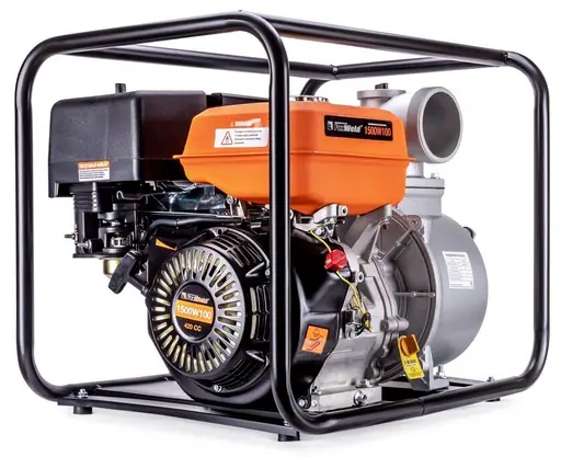 Мотопомпа бензиновая FoxWeld 1500W100 - высокопроизводительная помпа для обустройства полива больших площадей и для перекачивания больших объёмов чистой воды, например из бассейнов, садовых или пожарных водоёмов.