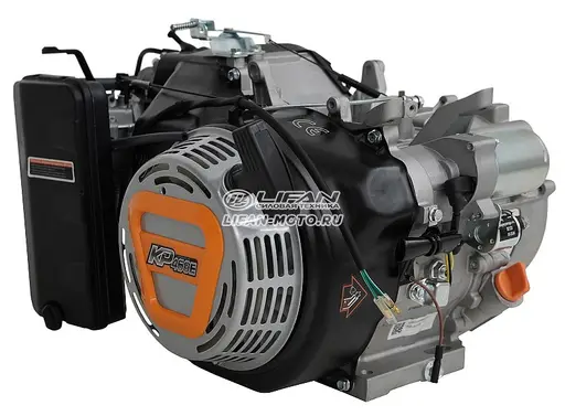 Двигатель LIFAN KP460E-V обладает максимальной мощностью 20 л. с. и горизонтальным расположением вала. Его отличительной особенностью является конусный короткий вал диаметром 54,45 мм, что делает его идеальным выбором для генераторов.