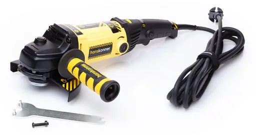 Hanskonner HAG15150EC – мощная универсальная болгарка (УШМ) под рабочий диаметр диска 150 мм. Имеет компоновку с длинной рукоятью, производительный 1500 Вт электромотор StoneCut и мощную механическую часть – способна выполнять любые задачи по резке, зачистке, шлифованию поверхностей из металла, керамической плитки, кирпича и камня. Выверенные массово-габаритные показатели, а также нейтральный центр тяжести гарантируют лучший контроль инструмента, а клиновидный корпус редуктора NarrowBody значительно облегчает рабочий процесс в условиях с трудным доступом. Главная особенность модели, выделяющая ее среди аналогов – наличие блока константной электроники EPM (Electronic Power Manager), задача которого поддерживать оптимальную частоту вращения на валу шпинделя, препятствуя падению оборотов под нагрузкой. Применение данной опции в среднем повышает производительность работы на 15%. Кроме того, блок EPM обеспечивает плавный запуск инструмента, исключая стартовый рывок, а также позволяет в широком диапазоне (2400 – 8400 об/ мин) производить регулировку оборотов вала шпинделя в зависимости от типа используемой оснастки и обрабатываемого материала. Модель имеет повышенные надежность и ресурс, как за счет применения качественных комплектующих (фирменные подшипники C&U), так и за счет продуманной, с запасом прочности, конструкции: электромотор покрыт несколькими изоляционными слоями термостойкого лака и бронирован от пыли и абразивных частиц, благодаря закалке, повышенной износостойкостью обладают конические шестерни редуктора, корпус инструмента изготовлен с использованием нейлона, что способствует его долговечности.