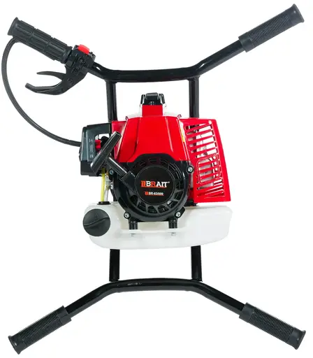 Мотобур Brait AG-63/000 используется для бурения различных, в том числе и крупных отверстий в почве. Оборудован 2-х тактным двигателем мощностью 4 л.с. Полупрозрачный бак позволяет отслеживать расход топливной смеси. Оснащен рукоятками для двух операторов, одна из рукояток оснащена органами управления. Скорость вращения шнека может достигать 280 оборотов в минуту. Вес бура 11.7 кг. Есть возможность присоединения шнеков различных диаметров для работы с почвой или льдом.