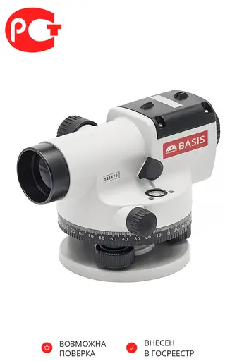 Нивелир ADA BASIS позволит выполнять работу на строительной площадке стабильно и точно. Он оснащен воздушным автоматическим компенсатором. После предварительной установки по круглому уровню при помощи трех регулировочных винтов, механизм автоматической компенсации устанавливает линию визирования точно в горизонт.