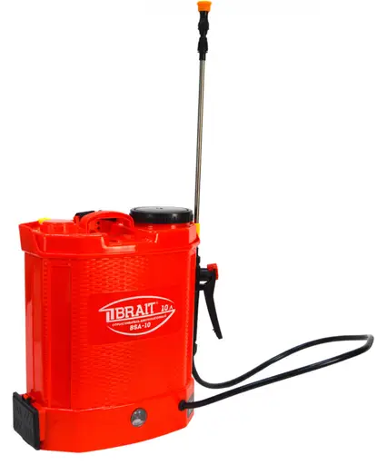 Вопросы о Опрыскиватель аккумуляторный Brait BSA-10 (объем 10л,рабочее давление 1,5-4 бар, АКБ гелевый, 12В,8Ач)