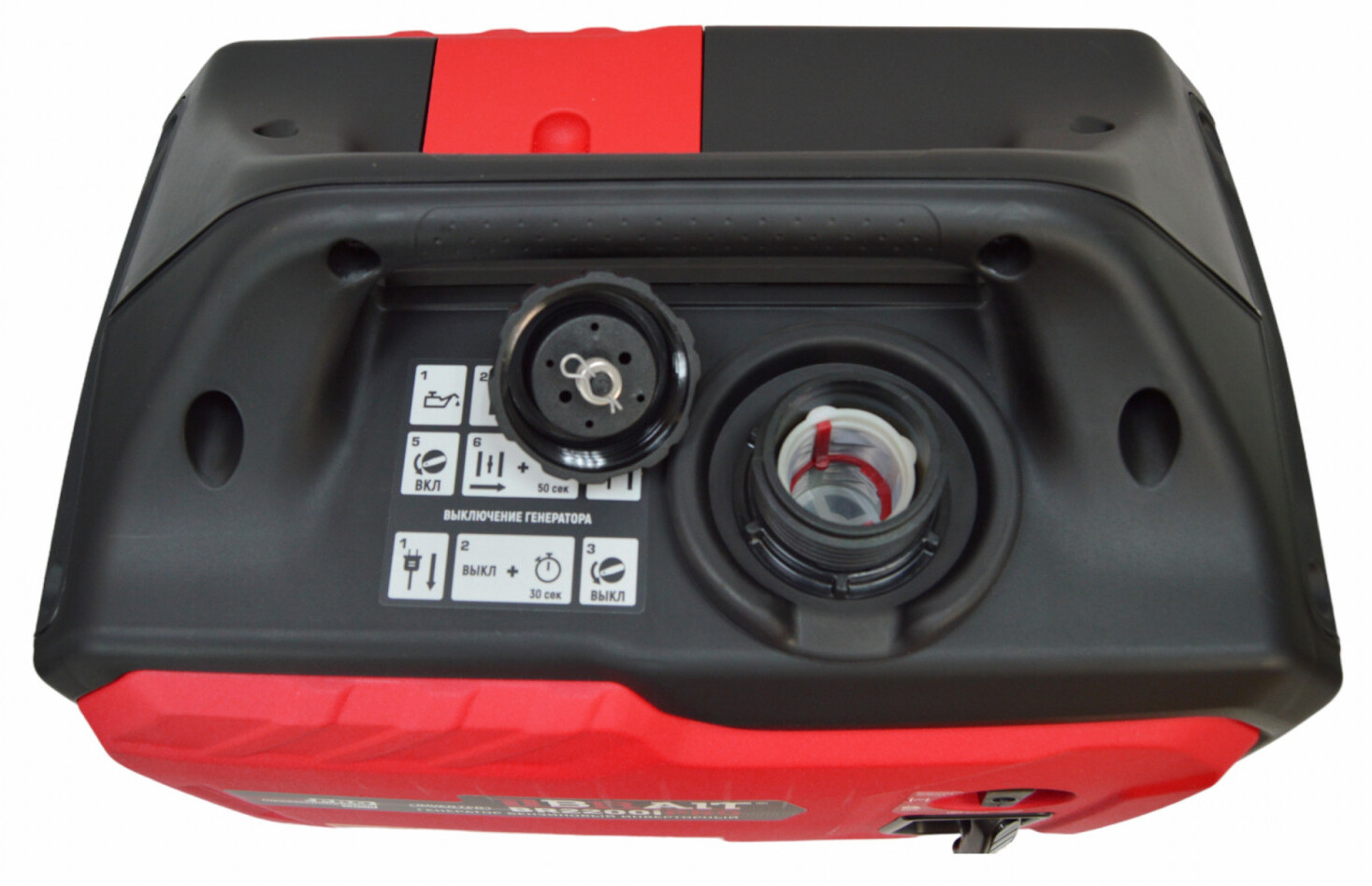Наличие удобной рукоятки сверху корпуса и малый вес генератора обеспечивают ее удобную и легкую транспортировку.