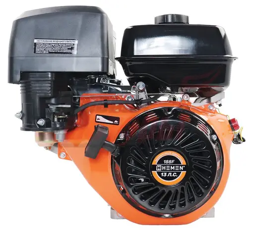 Бензиновый двигатель «Hemen» («Хемен») 188 °F — четырехтактный, одноцилиндровый двигатель внутреннего сгорания. Движок мощностью 13 л. с. предназначен для установки на мототехнику различного уровня. Хорошо подходит для установки на культиваторы и мотоблоки, мотобуксировщики, мотопомпы, генераторы и другую технику.