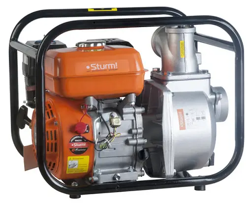 Sturm BP87101 – высокопроизводительная универсальная бензиновая мотопомпа для домашнего, жилищно-коммунального или строительного применения. Имеет классическую компоновку: двигатель и насос смонтированы внутри прочной усиленной трубчатой рамы, страхующей основные узлы от случайных повреждений, при транспортировке. Мотопомпа оснащается четырехтактным бензиновым двигателем рабочим объемом 212 см3 (мощность 5,15 кВт / 7 л. с.) с верхним расположением клапанов (OHV) и воздушным охлаждением.